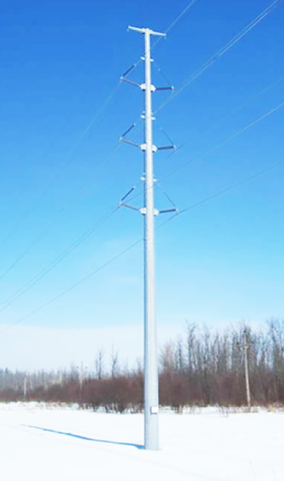 This is a rendering of the electrical poles International Transmission Company expects to place along 19 Mile Road to route electricity to Henry Ford Macomb Hospital. While ITC claimed the poles could not be used on a route following Dalcoma Drive, township officials discovered the poles would not likely impact flights to the hospital helipad and that ITC used these poles in a 2021 rendering of a Dalcoma Drive power line route.