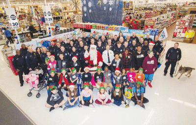 Shop with a Warthog brings together active and retired police officers, court and jail officers, and firefighters who accompany children on a Christmas shopping trip at Walmart.