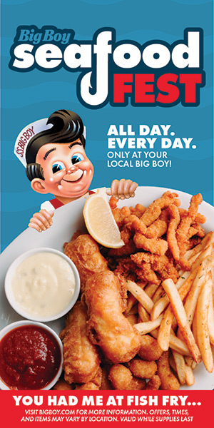 • BIG BOY, 200 W. Maple Road, offering Seafood Fest daily and Seafood Buffet on Friday evenings, bigboy.com