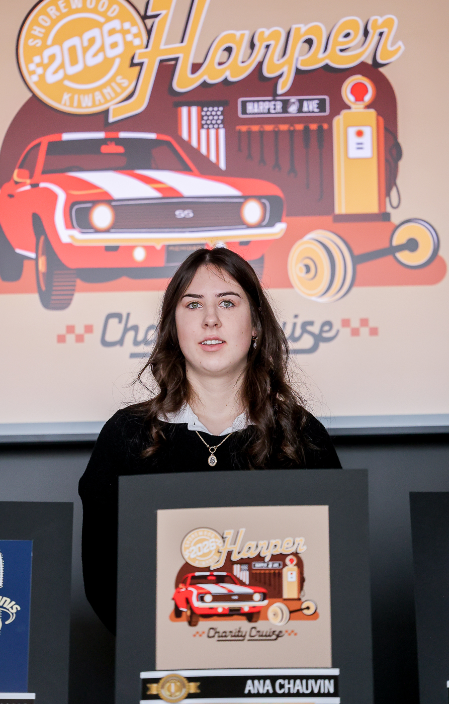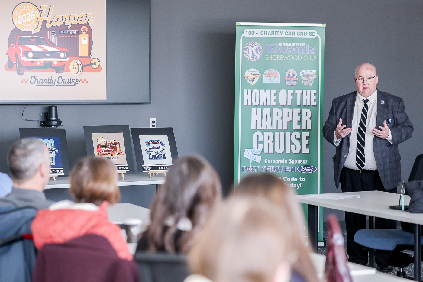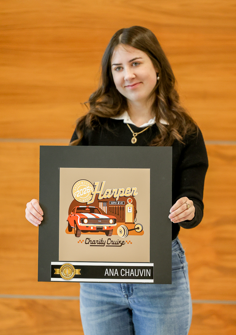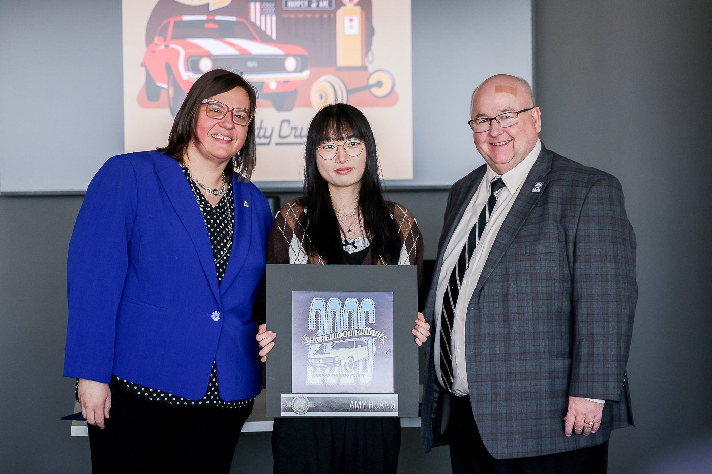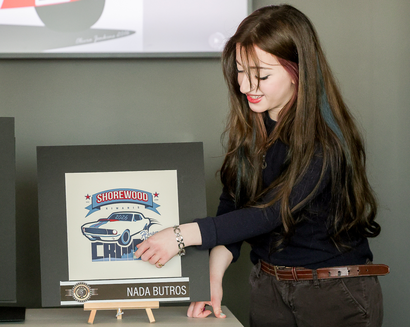 MCC graphic designers show off designed logos for the Shorewood Kiwanis Harper Charity Cruise