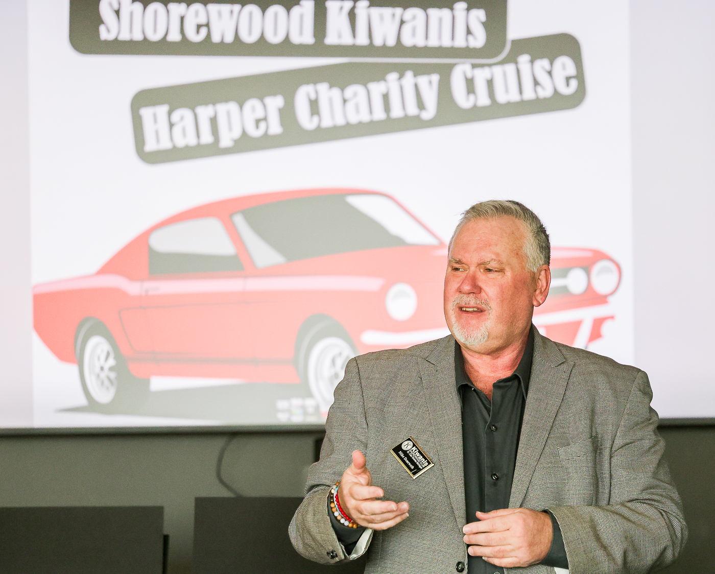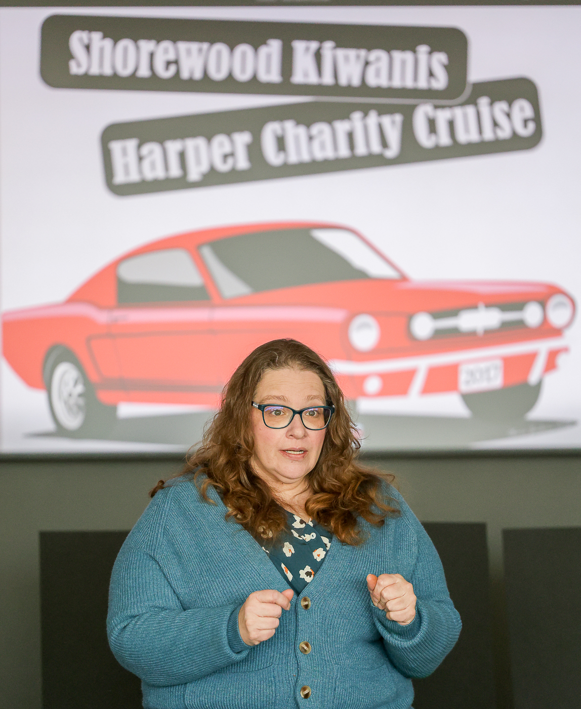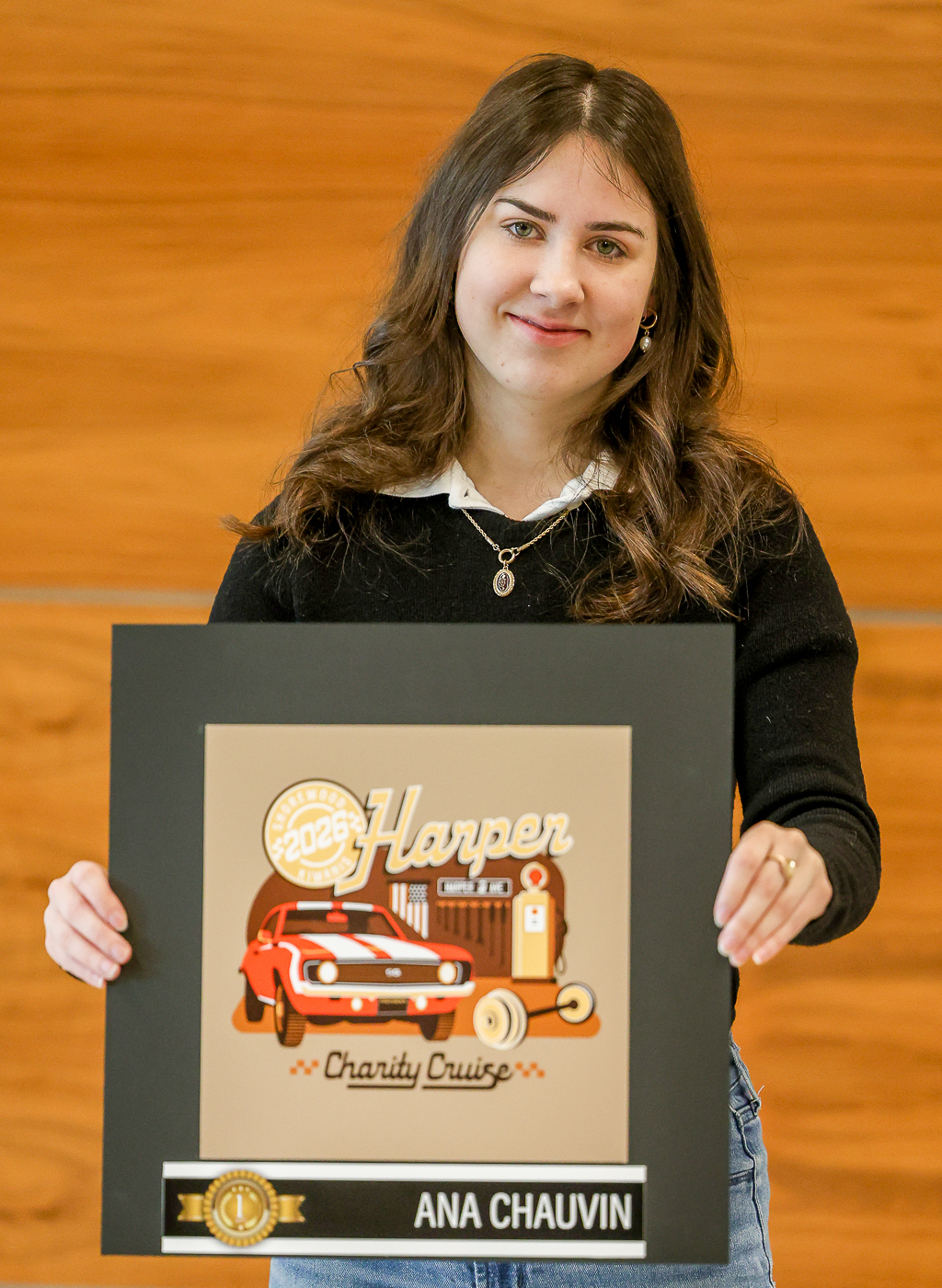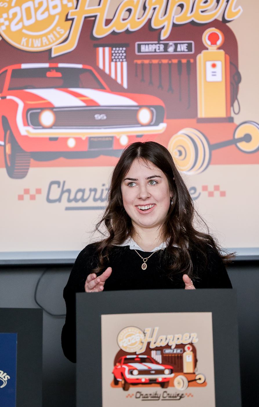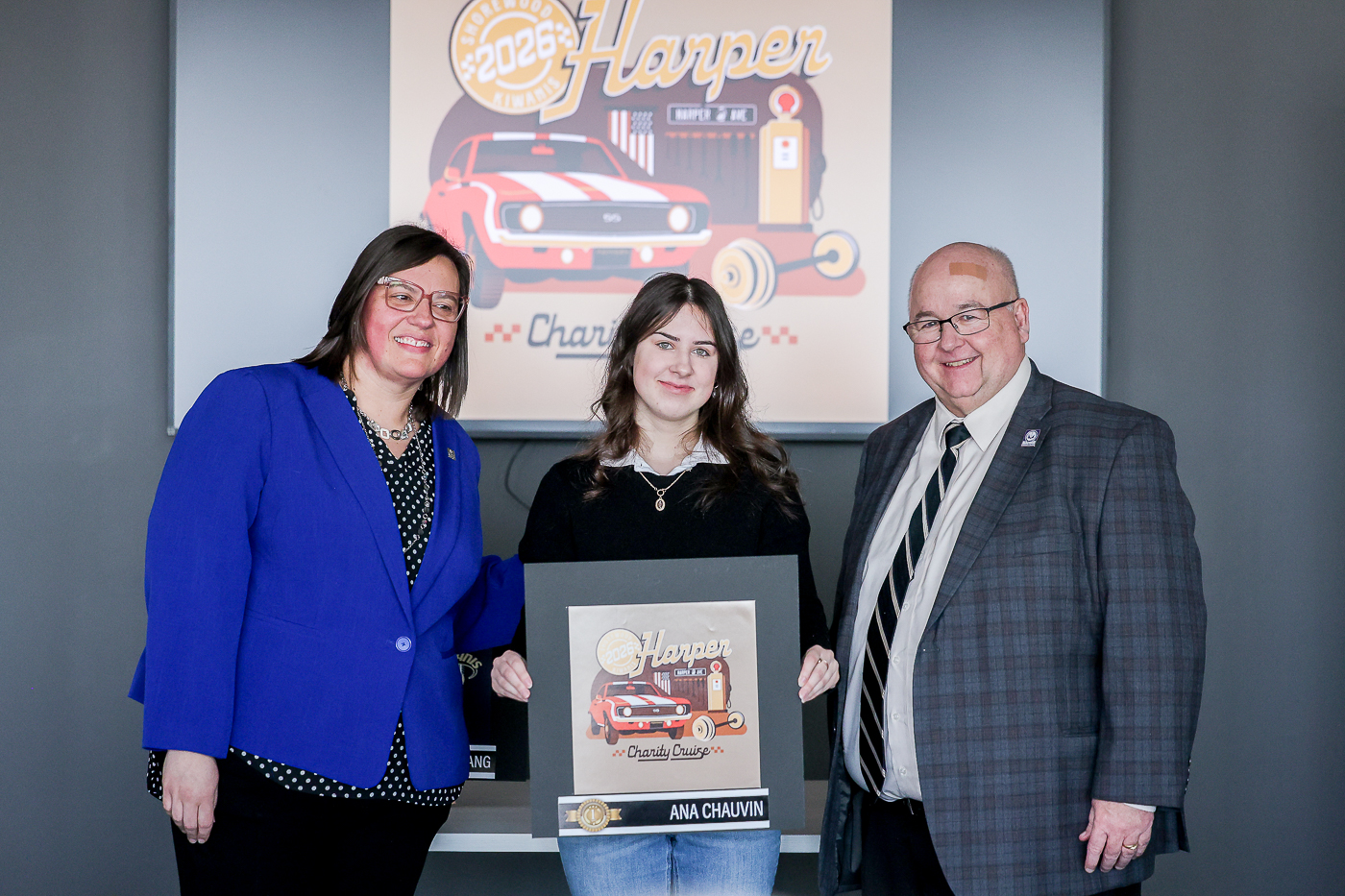 MCC graphic designers show off designed logos for the Shorewood Kiwanis Harper Charity Cruise