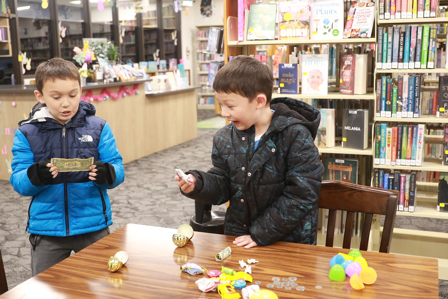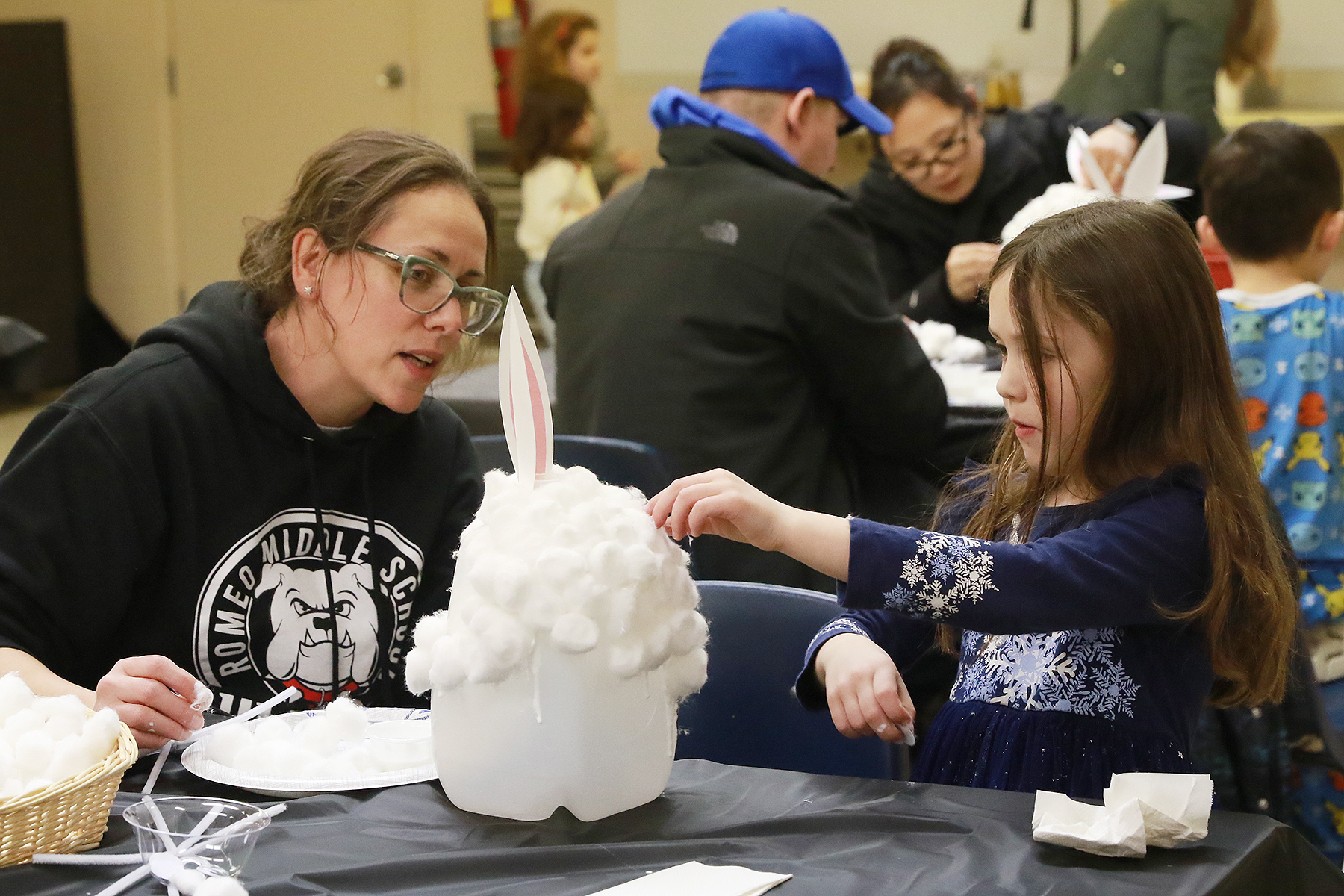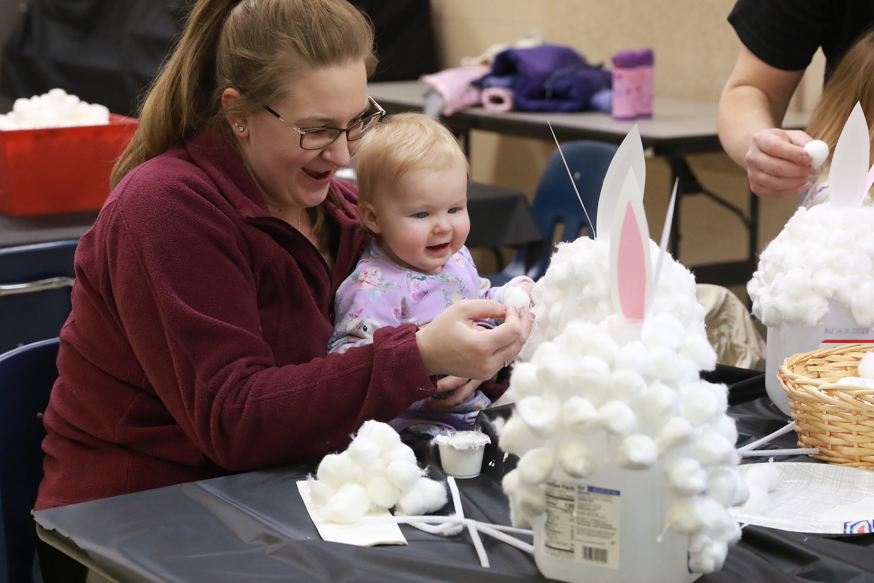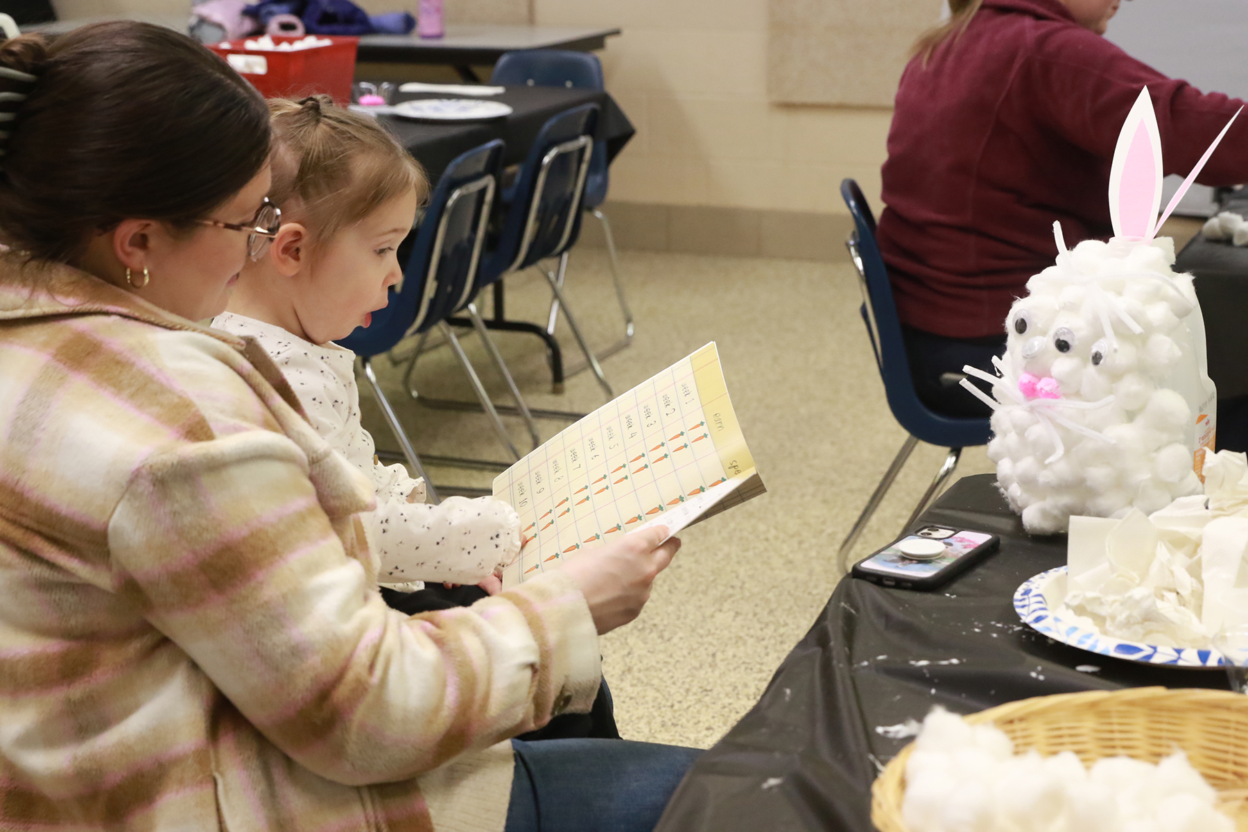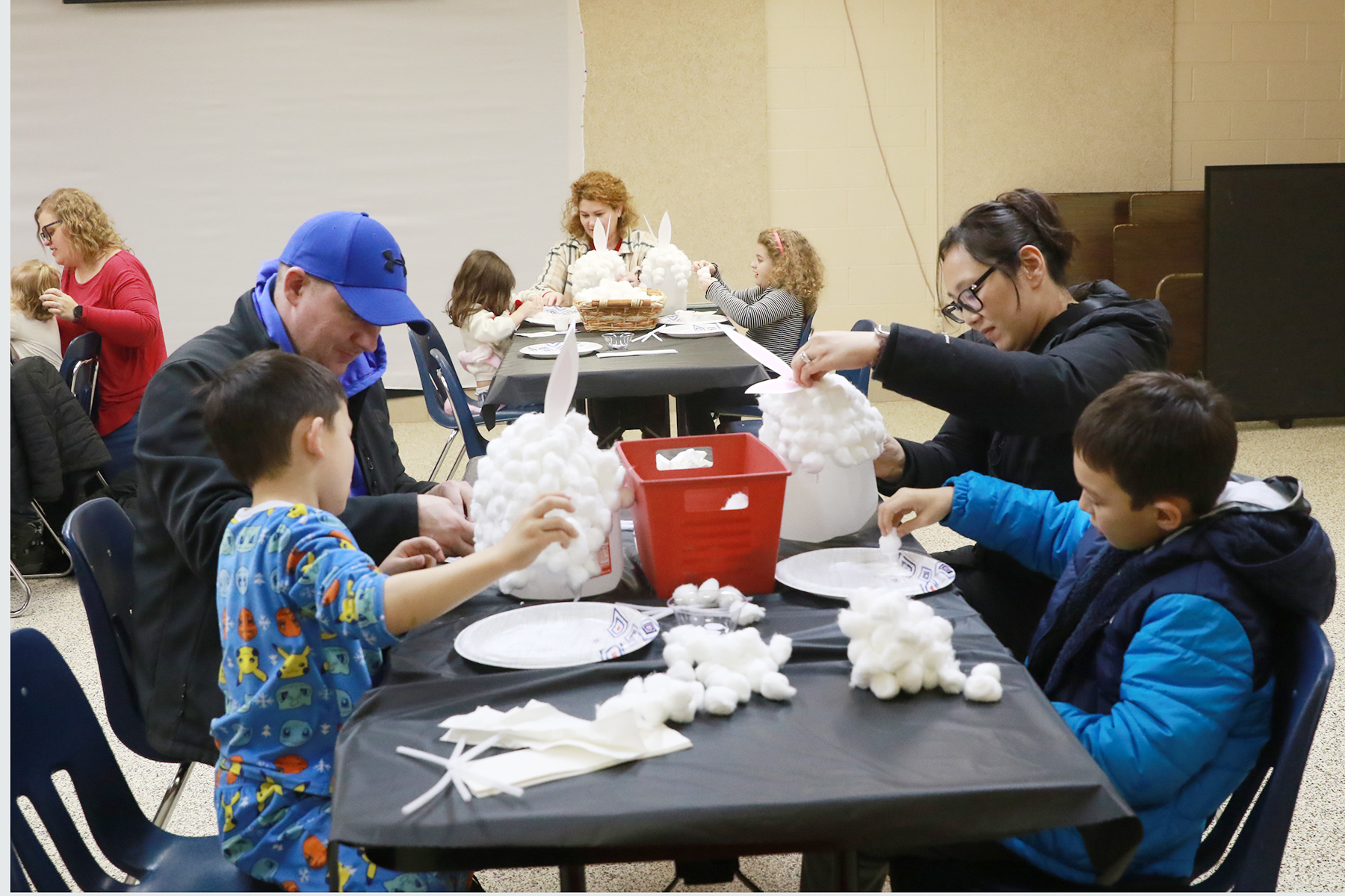 Families make bunny banks, hunt eggs during an Easter-themed program