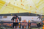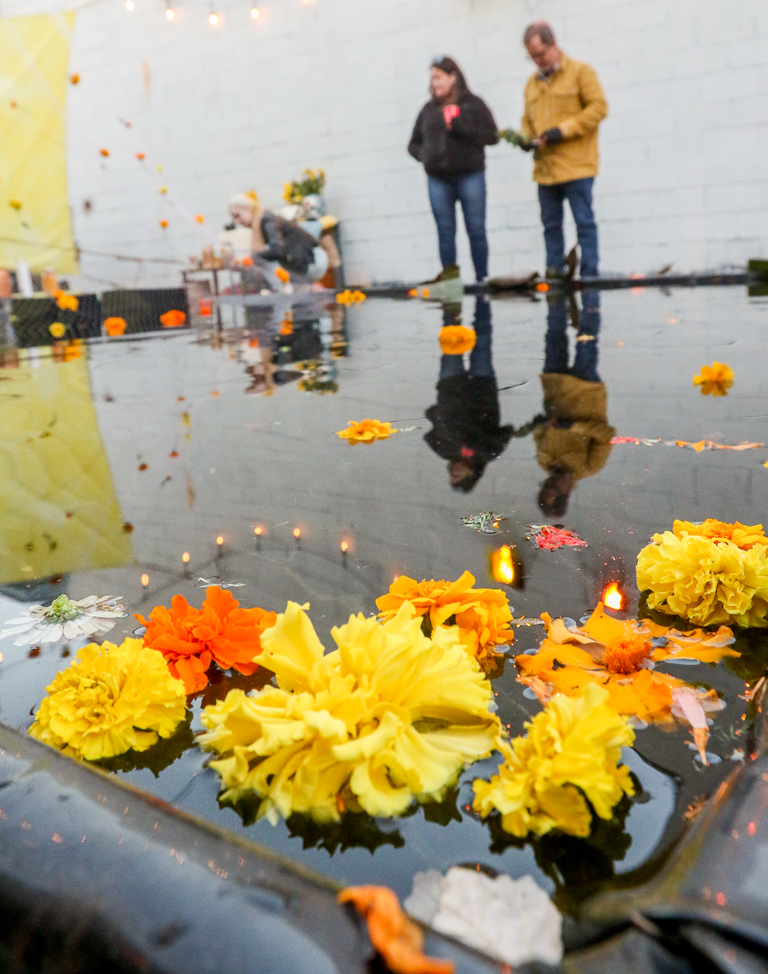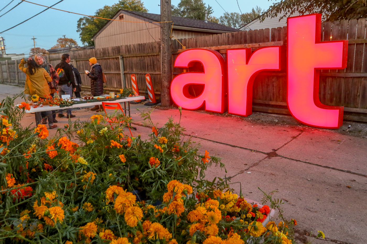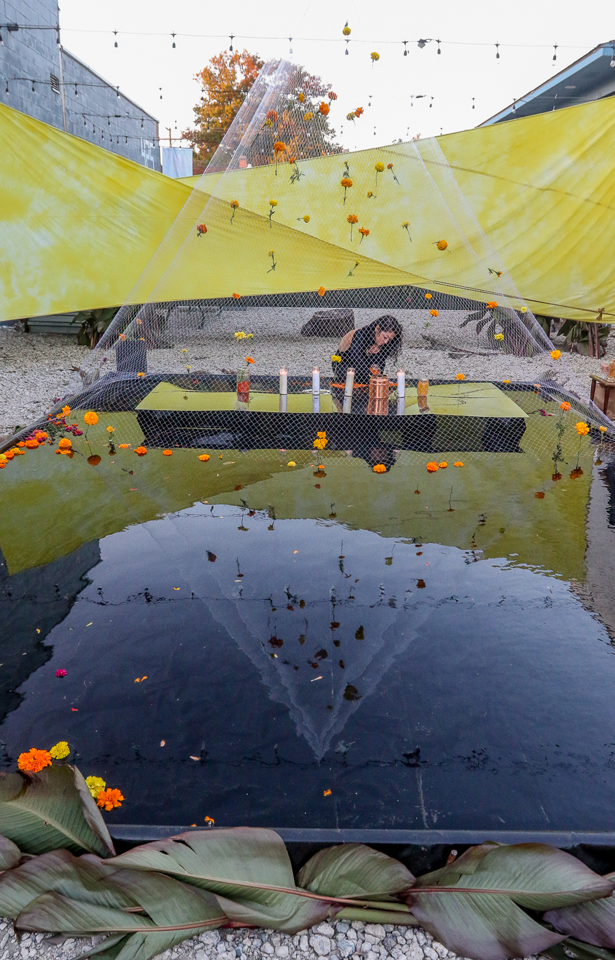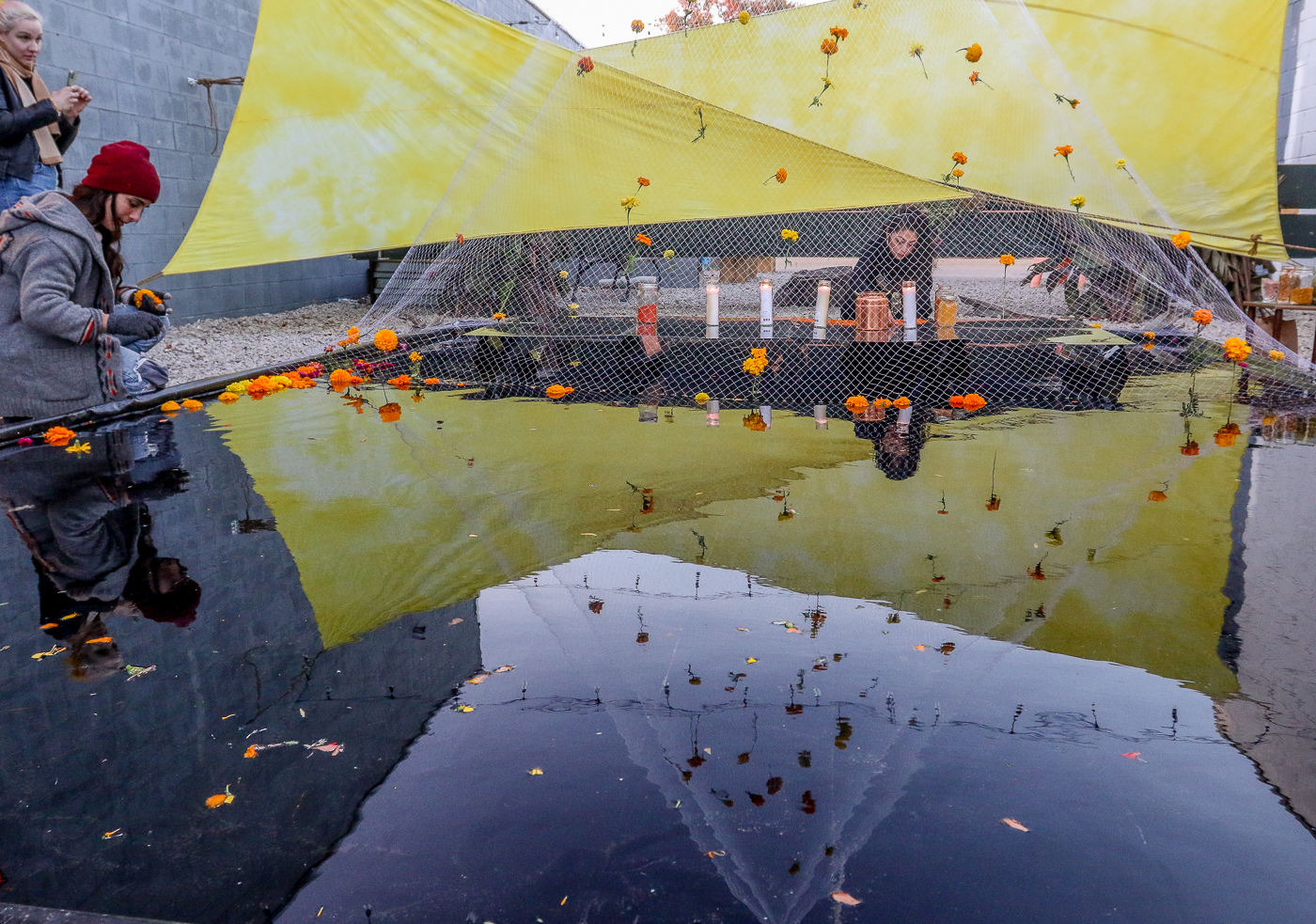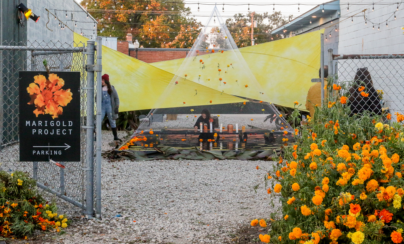 Gardeners assemble marigold blooms into public art installations
