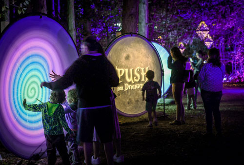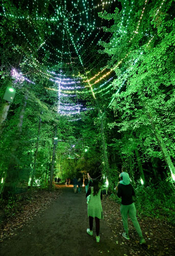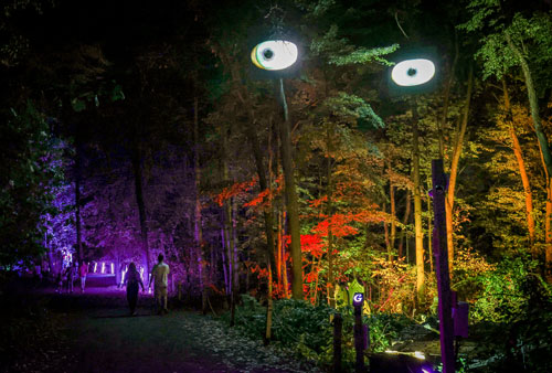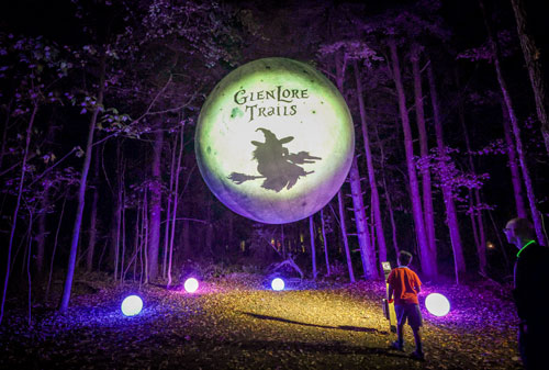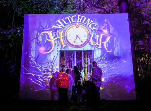 Visitors enjoy the Glenlore Trails “The Witching Hour” immersive light show