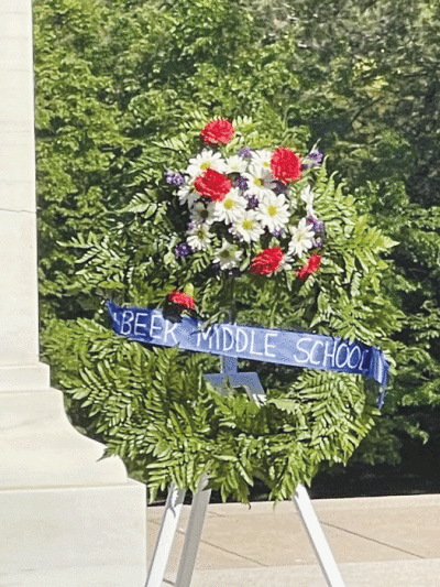WARREN/ARLINGTON, VA. — When four Beer Middle School students placed a commemorative wreath at Arlington National Cemetery on April 21, it hit close to home.