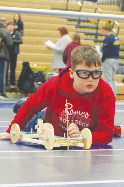 Logan White, of Romeo Middle School, competes in the wheeled vehicle category.