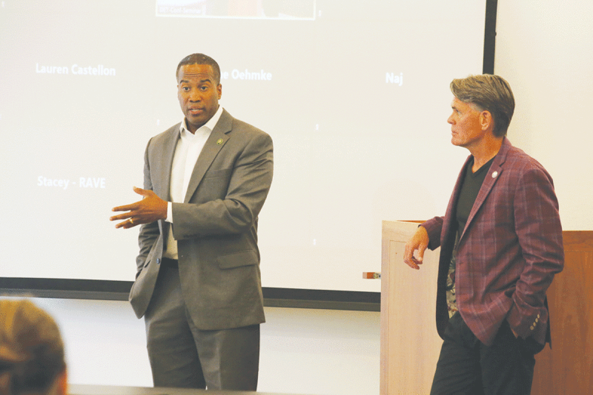 U.S. Rep. John James, R-Shelby Township, and Macomb County Executive Mark Hackel joined Michigan business leaders for the “State of the Economy” forum in Detroit on June 26, held at the offices of law firm Butzel Long and sponsored by the Michigan Chamber of Commerce. The two elected leaders addressed the county’s defense and transportation industries.