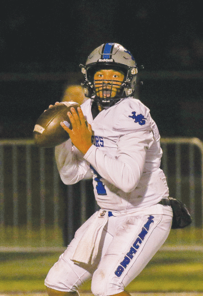 L’Anse Creuse senior quarterback Jaiden Sanders looks for an open receiver.