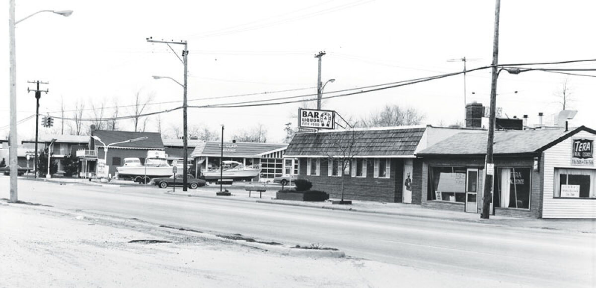In this photo from 1978, Pat O’Brien’s is between Tera Real Estate and St. Clair Marine.