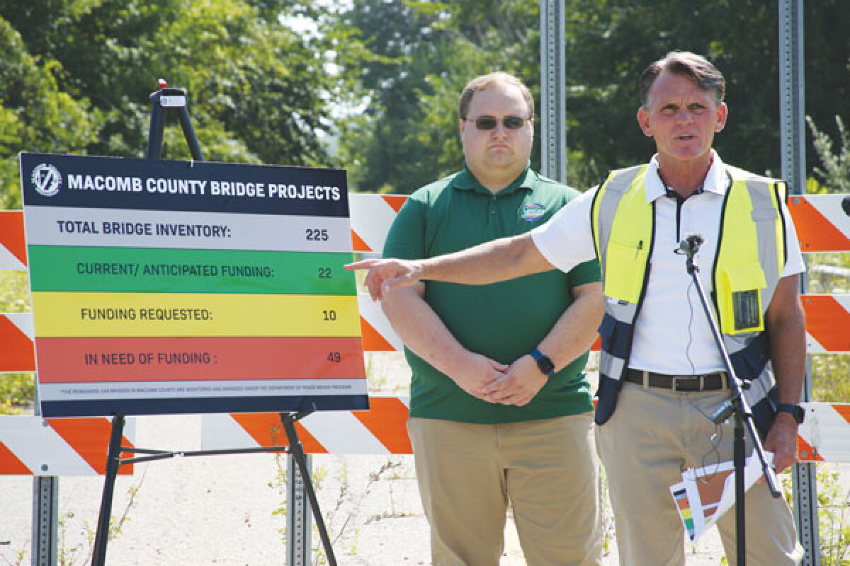 MACOMB TOWNSHIP — Macomb County Executive Mark Hackel highlighted upcoming bridge repair and replacement projects throughout the county at a press conference on Aug. 5.