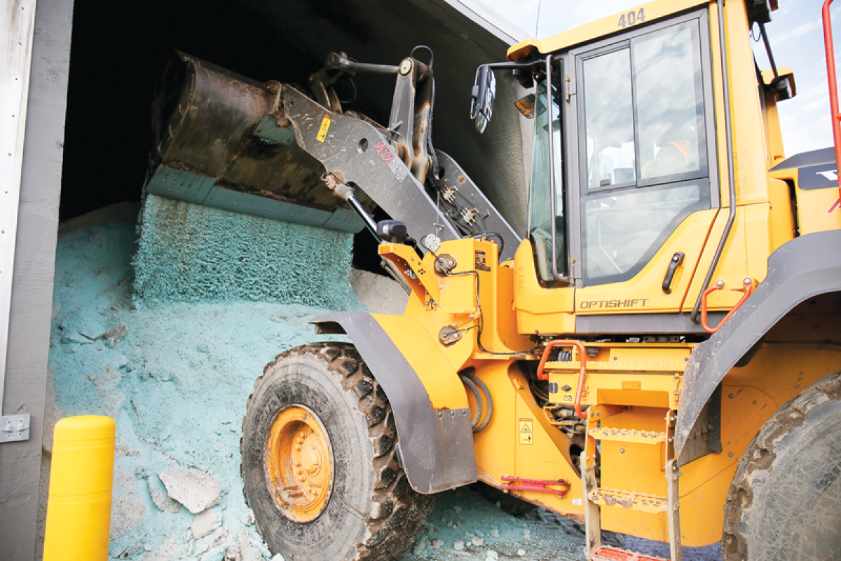 This year’s snow control fleet includes one 4-yard loader for loading salt, two 3-yard loaders and one 1-yard loader, which can be used for heavy snow cleanup. Five tandem-axle dump trucks serve as the front line for major road salting and plowing. A sixth tandem-axle truck is fitted for a plow, if extra help is needed.