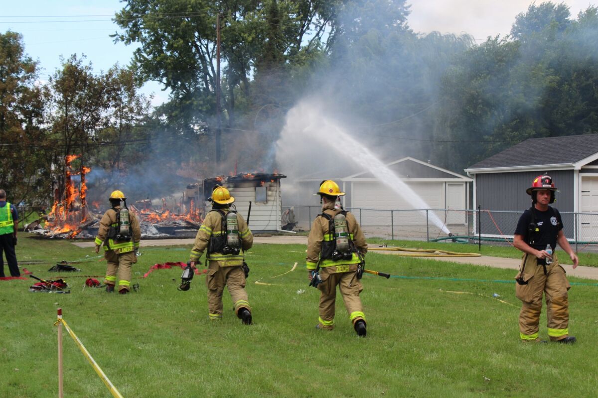 The home is a total loss, Jacobs said. One firefighter was checked out due to the heat of the fire but was cleared and has returned to work, he said.