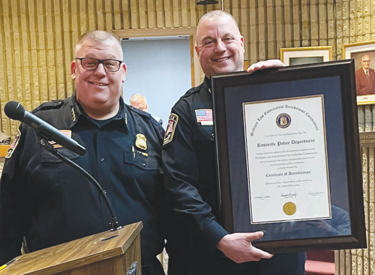 ROSEVILLE — The Roseville Police Department announced its re-accreditation by the Michigan Association of Chiefs of Police at an April 9 City Council meeting.