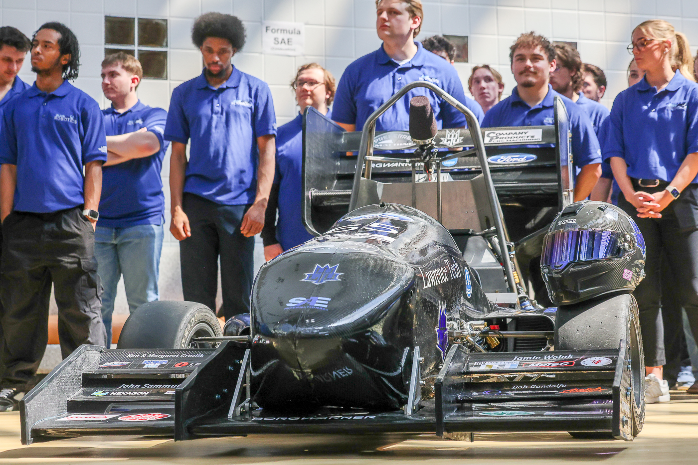Formula SAE students at Lawrence Tech conceived, designed and fabricated a small, formula-style, open-wheel race car with an internal combustion engine.