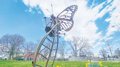 MOUNT CLEMENS — Tucked between the homes and shops of bustling Gratiot Avenue is a lot at what would be 17 Gratiot, just off the road’s northbound stretch. Grass and statues and little else stand there now, but it will not be long until the land becomes the Macomb Cultural and Economic Partnership’s pollinator park.